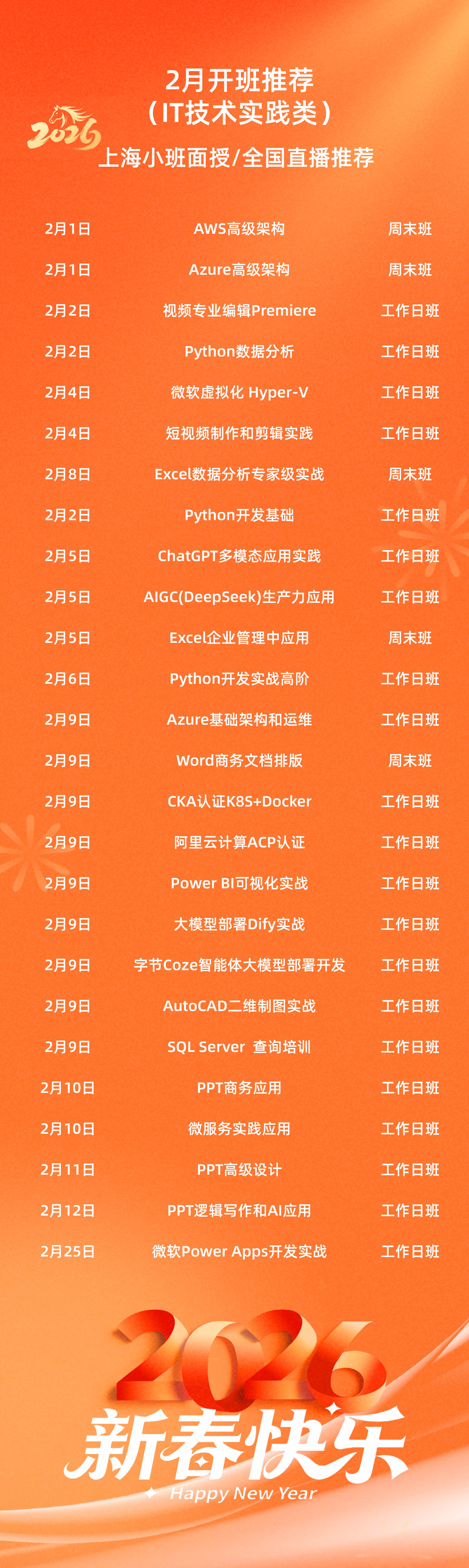 2026年2月开班推荐(IT技术实践类)